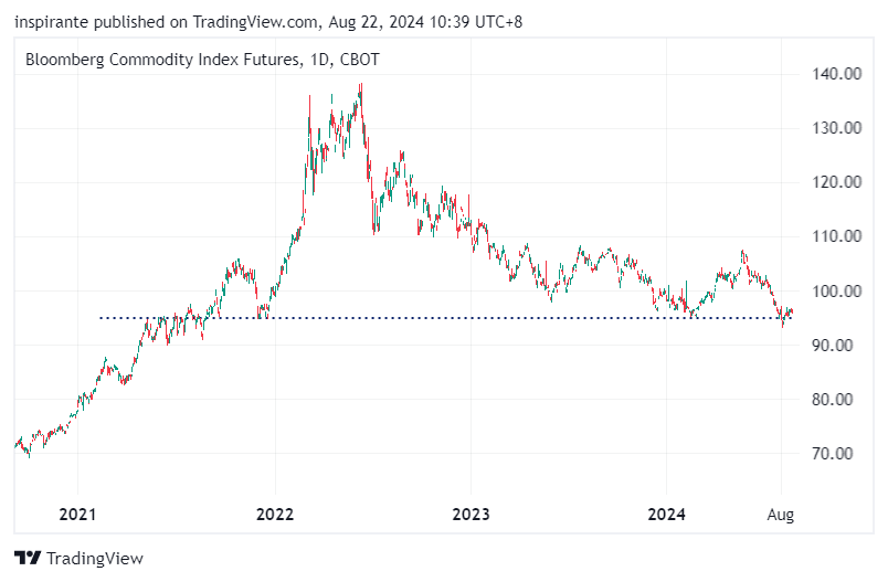 With most of the pandemic-era gains erased, the Bloomberg Commodity Index remains subdued, even as the U.S. dollar weakens.