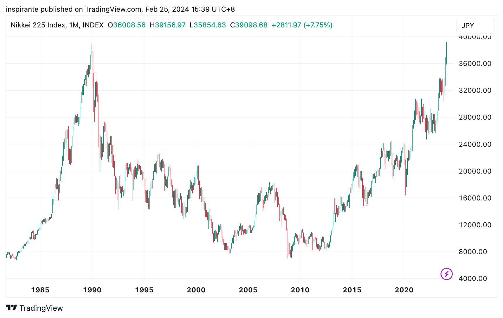 After over three decades, the Japanese Nikkei 225 index has finally surpassed the previous peak. This significant milestone was achieved through a combination of attractive valuations, a weakening Yen, and a rebound in global equity markets.